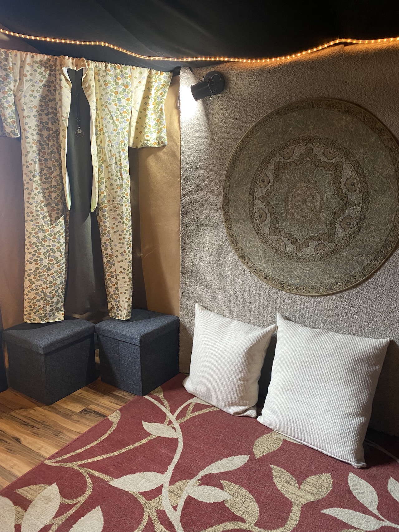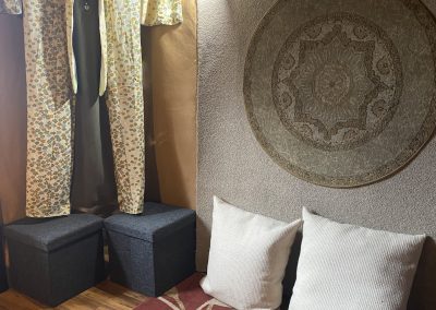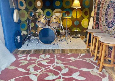 A beautiful and acoustically enhanced practice studio for one – four musicians. Perfect space to offer music lessons, master your craft, or work confidentially on a new musical piece. Safe & comfortable space to meet with band members or explore new creative collaborations. Peaceful space for leaders of sound healings or drumming circles for up to 8 people.